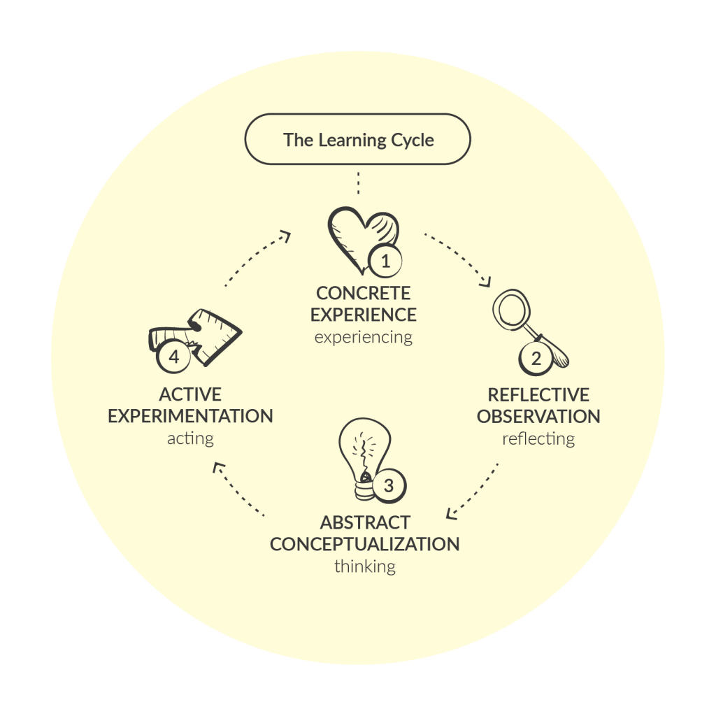 During training, we apply Kolb’s Experiential Learning Cycle to encourage participants to reflect on their experiences, extract meaningful insights, and make conscious decisions that foster effective behavior in new situations. We also empower participants to take ownership of their personal development while fostering positive interdependence and collaboration within the group.